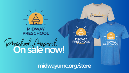 Our Midway UMC Preschool Apparel Shop is now open with fun and comfortable items for families, students, and supporters.