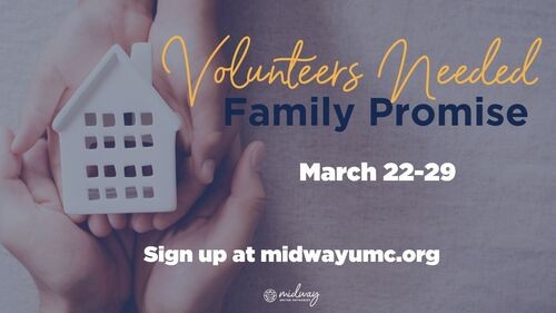 Midway UMC will host Family Promise during the week of March 22–29, welcoming families in our community who are working diligently toward independence and self-sufficiency.